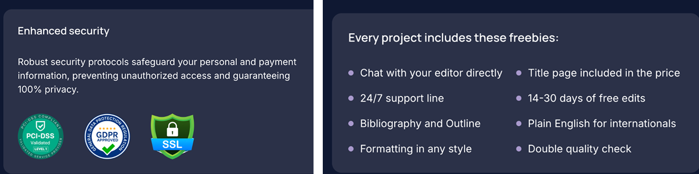 Another great addition is a free library of writing samples, where you can check real examples of essays, research papers, and reports. They’re meant for reference only, but they help you understand the quality level you can expect from your order.