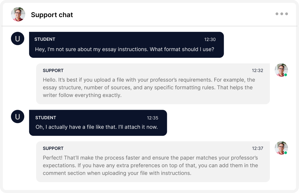 I also appreciated the fact that I could chat directly with my writer, which made the process way more personal and efficient. Plus, the support team is available 24/7, and they actually respond fast, not one of those bots that send generic replies.