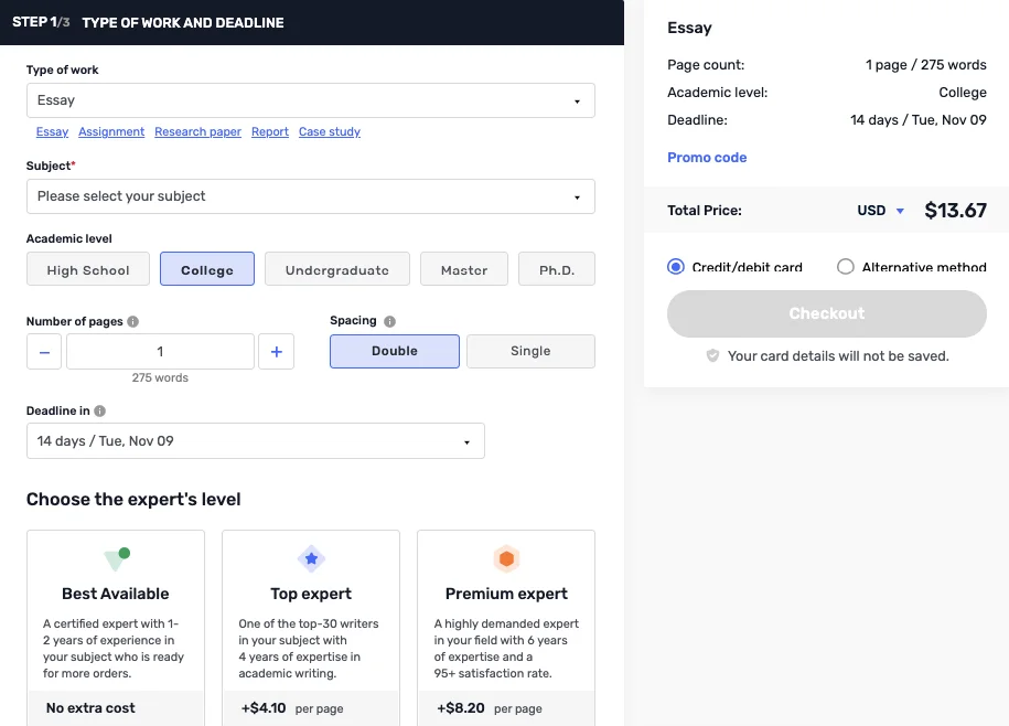 They promise to deliver high-quality, original papers written by writers with advanced degrees and subject-matter expertise. They also say each paper is crafted from scratch and checked for plagiarism and AI-generated content.