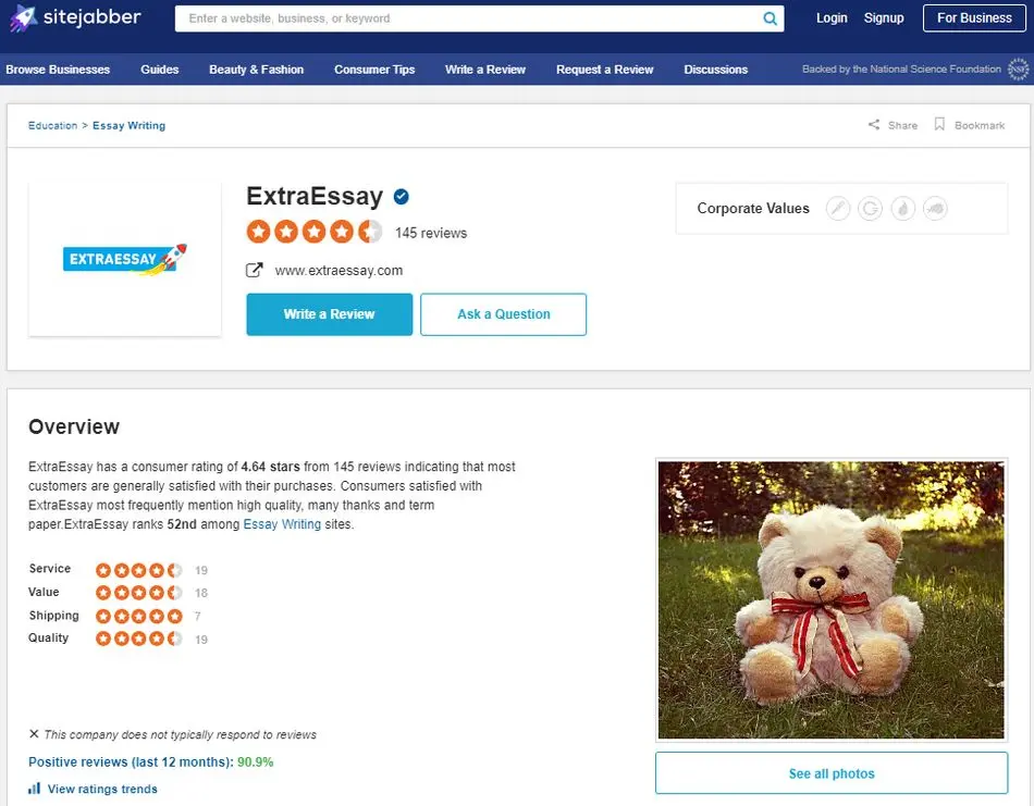 ExtraEssay is a rather mediocre service that can only compete with its own kind. It’s hard to call their office a scam service, because in fact – they send academic papers to their clients, as they sent us. However, the work was of completely poor quality. Many functions that, in theory, should be included in the price, here you just won’t get it – you’ll have to fork off a tangible amount. It seems that the company is still afloat thanks to these markups. There are also various rumors about the reputation of this company on the Internet, and naturally, many people do not like that the company removes negative reviews about itself. We do not recommend using this service.